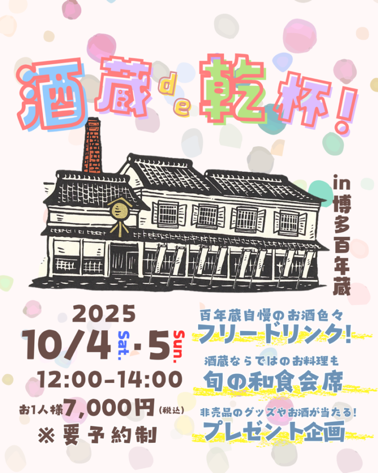 【受付終了】酒蔵de乾杯!in博多百年蔵(2025/10/4~5)